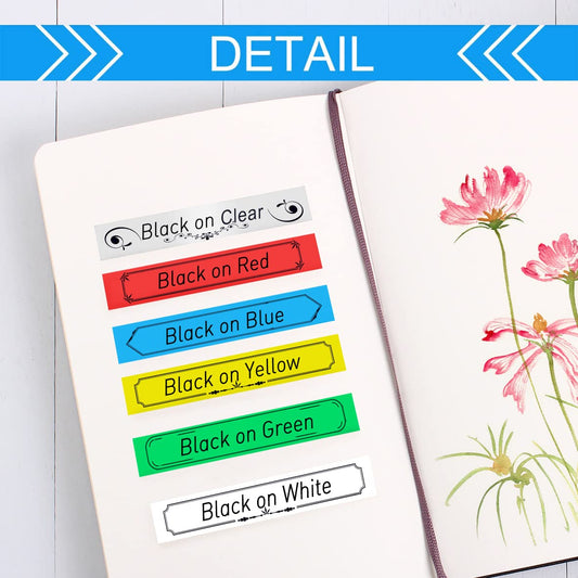 Anycolor 6-Pack Compatible Label Tape Replacement for Brother P Touch TZe TZ 12mm 0.47 Laminated Colored Tape White/Clear/Red/Blue/Yellow/Green for Ptouch PT-D210 PT-H110 PT-D220 PTD400 PTD410