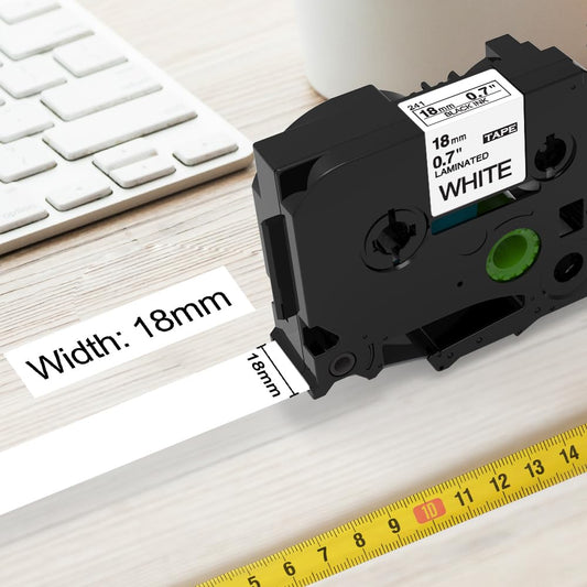 Anycolor Tz Tape 18mm 0.7 Laminated White Tape Replacement for Brother TZe-241 TZ-241 Label Maker Tape Work with P Touch PT-D400 PTD410 PTD600 PT-P710BT Label Maker, Black on White, 4 Pack