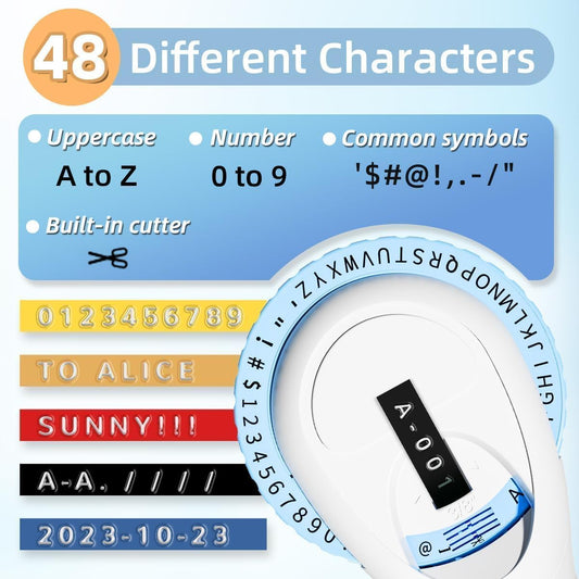 Anycolor Embossing Label Maker with 6 Label Tapes, Omega S Home Embossing Label Maker Using with 3D Plastic Embossing Labels 9mm x 3m, Protable Handheld Label Maker for Home Office DIY, Blue